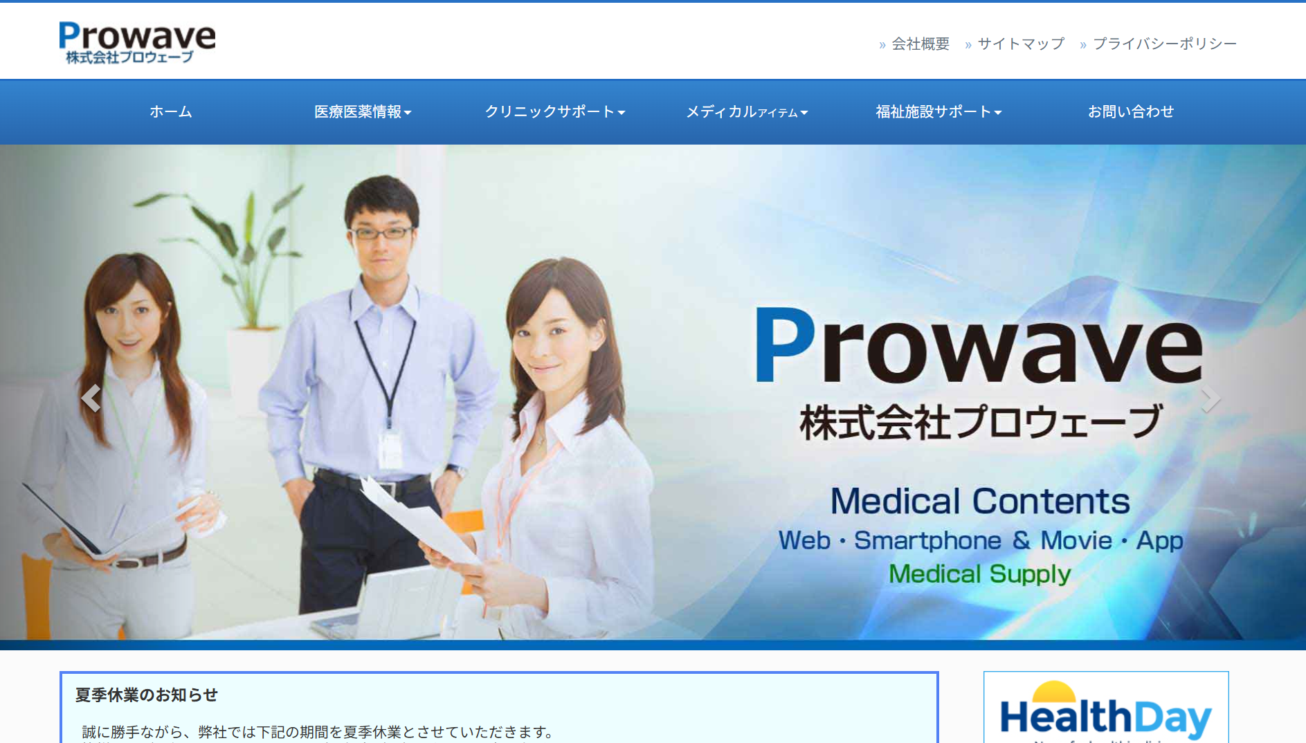 株式会社プロウェーブは、医療・医薬分野に特化した動画制作やコンテンツ制作を中心に、医療機関や製薬企業、福祉施設の情報発信を支援する企業です。薬事法やプロモーションコードを遵守し、医療現場の信頼性を損なわない映像制作を行うことを重視。年間50本以上の医療・医薬関連動画を手がけ、専門医監修やメディカルライターによる台本制作にも対応しています。さらに、クリニック向けのMEO対策・ホ ームページ制作・患者向け情報提供なども展開し、医療現場と患者をつなぐ情報サポートを実現しています。
